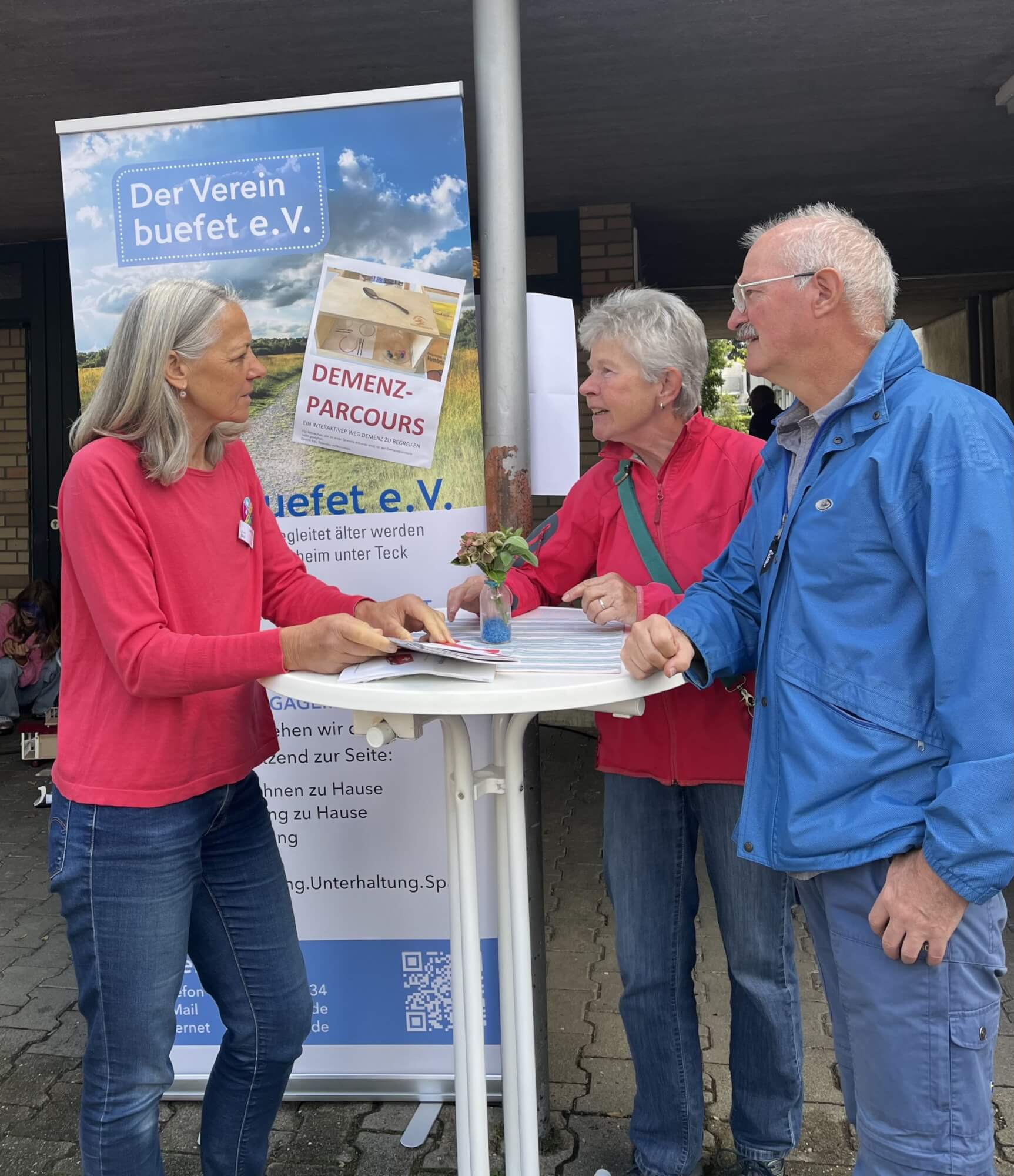 Beim Jesinger Straßenfest am 14. September 2025 lud der buefet e. V. Besucherinnen und Besucher ein, Demenz auf spielerische Weise zu erleben. Der Demenzparcours, begleitet von informativem Material zum Mitnehmen, zog sowohl Erwachsene als auch Kinder an und bot eine berührende Möglichkeit, sich in die Lebenswelt von Menschen mit Demenz hineinzuversetzen.
